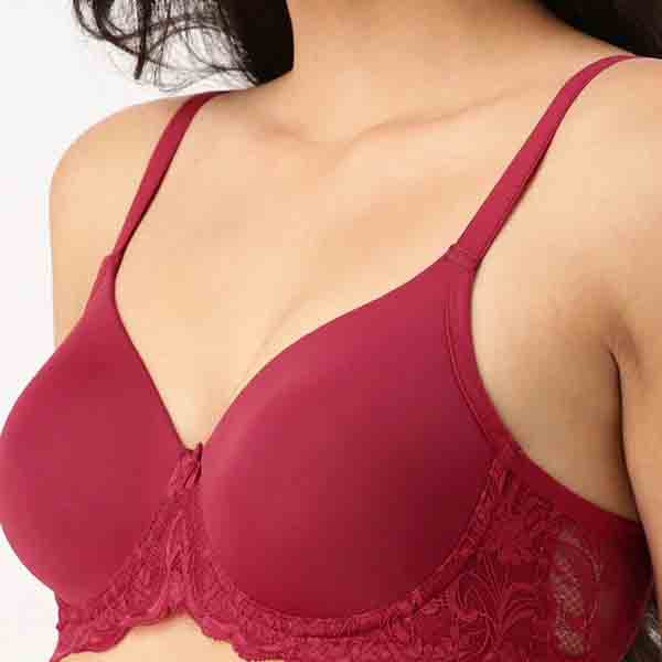 Maroon lace half-coverage Push-Up bra