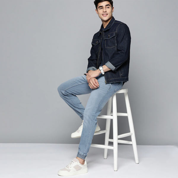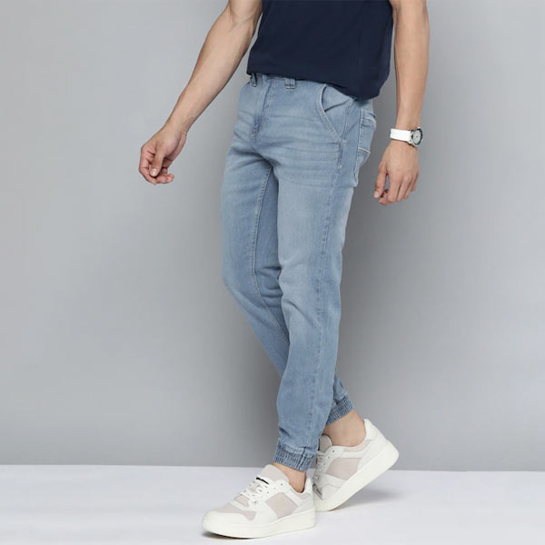 Men Blue Slim Fit Light Fade Stretchable Denim Joggers